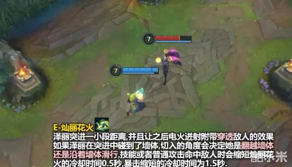 泽丽向前突进一小段距离,并强化接下来的普攻效果。如果泽丽朝着墙体突进,则会直接翻越墙体。