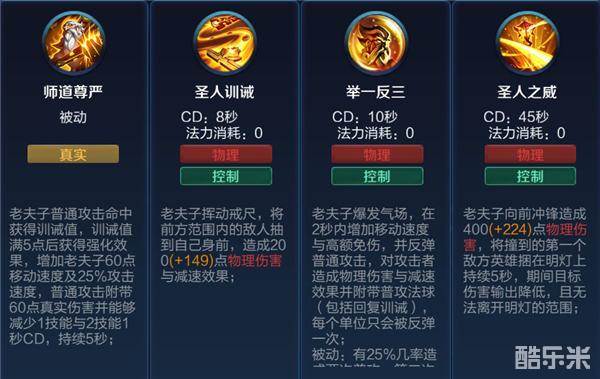 解析:相比之下老夫子的三技能就显得十分霸道了,能将敌人控制时间较长,虽说敌人还可以攻击,但是在他的大招持续时间内,输出能力就会降低很多。在这个时候,敌方即使使用位移技能,也不能逃出老夫子的技能圈。这个技能是老夫子控制敌人的主要技能,在和对手单挑的时候,只要被老夫子的大招打中,无论是刺客玩家还是射手和法师,都会很快被老夫子的戒尺折磨致死。