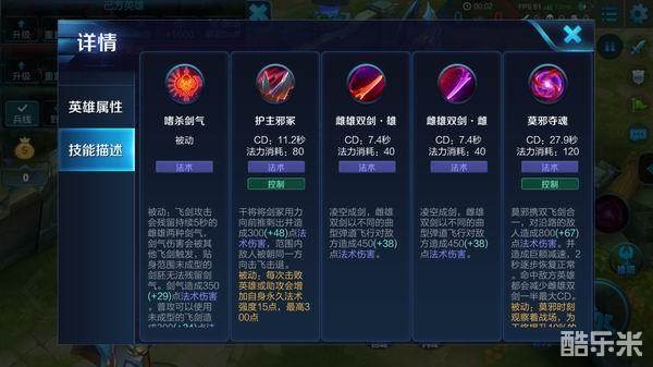 分析:干将莫邪的飞剑攻击对敌人造成伤害的时候,会在敌人身上残留剑气,剑气会被干将莫邪的其它攻击触发,造成额外的伤害,让干将莫邪能够对敌人造成更高的伤害。需要注意的是,当敌人距离干将莫邪非常近的时候,是无法在敌人身上残留剑气的。除此以外,被动技能还让干将莫邪的普通攻击拥有了更高的伤害,即使不能使用技能,也能用普攻输出。