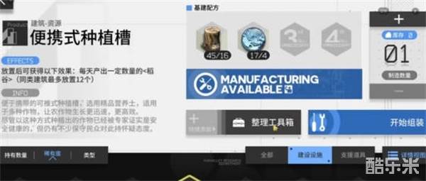 1:我们在驻扎地中的建筑是永久的,所以我们在生息演算中,可以获得大量的食物最有效的方法就是便携式种植槽;