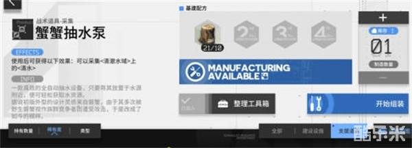 4:如果你想要快速的建造种植槽的话,那么你要获得大量的水资源和木材,这个时候采集实习站还有蟹蟹抽水泵就发挥用处了;