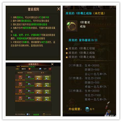 1、作为游戏中的高端战力增幅,套装材料每日产出有限,所以建议新手从套装普通型开始激活,优先普及角色一阶套装,激活初阶套装属性。