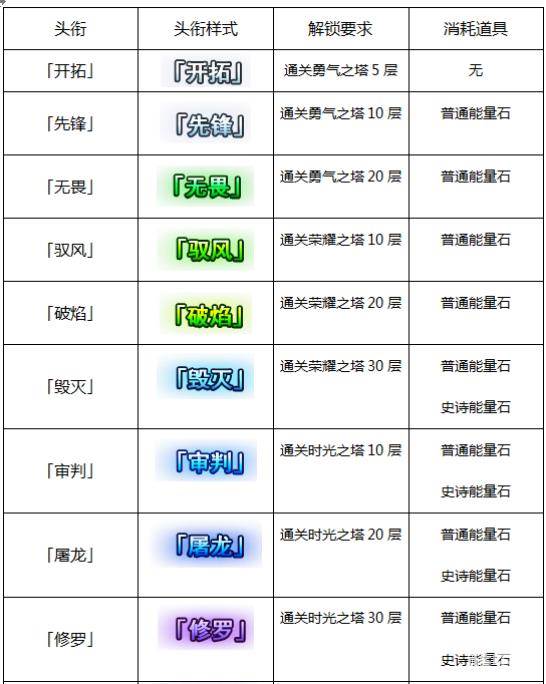 头衔代表着我们的荣耀,厉害的勇士将佩戴更高级的头衔名称,并享有更高的加成哦!