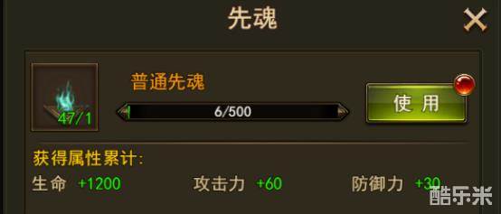 获取第一个头衔后,开启先魂功能。使用先魂道具可以给角色增加属性。每个先魂有使用次数上限,且用且珍惜。
