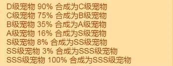疯狂骑士团宠物合成图鉴大全分享!疯狂骑士团有着多样的玩法机制,宠物合成就是其中一个玩法,那么疯狂骑士团宠物合成怎么玩呢?疯狂骑士团宠物合成机制是怎样的呢?疯狂骑士团中的每一种宠物分别是怎么合成的呢?这些都是大家非常关心的问题,首先简单介绍合成机制,比如D级宠物90%合成为C级宠物,A级宠物16%合成S级宠物,详细的图鉴在下文分享。