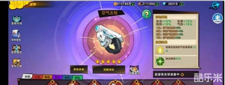 首先我们要了解,宝物七星最高,七星后开启宝物觉醒,最高是觉醒五次,就简称“五觉吧”,觉醒后宝物会开启一个新技能,技能效果也会随着觉醒等级的提高而增加,比如一层觉醒会有10%的额外效果,那么每层提升就会增加10%,有的宝物五层提高50%,宝物的星级可以用相同的宝物来升级,比如两个四星的A宝物,会合成一个五星的A宝物,也可以用万能齿轮进行升级,比如宝物A四星+一个四星的齿轮,就会得到一个五星的A宝物。