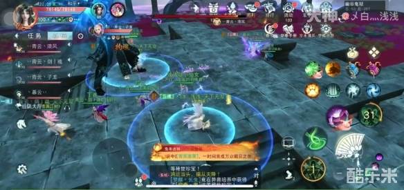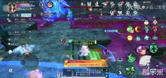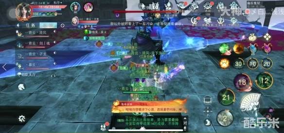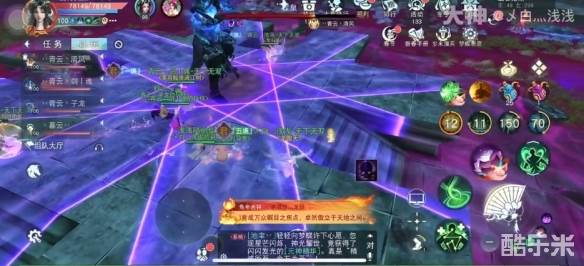 当出现红字提示:霖泉分身会将所有人推入深渊时,台子一侧会出现蓝色邪影。需要在左右两边的楼梯内躲避。切勿躲在BOSS身后的蓝色半屏范围伤害内。