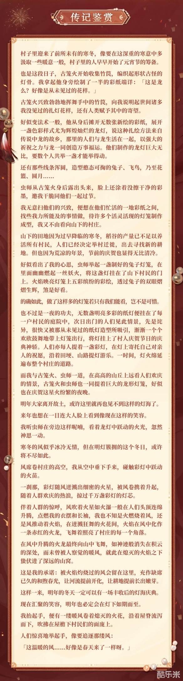 燃烧的火龙腾跃入晚云间,流泻的暖风拂过人们面庞。就与那掠过灼焰的风约定,来年也为这绚丽欢庆的人间,带来灯下的笑语欢声吧。