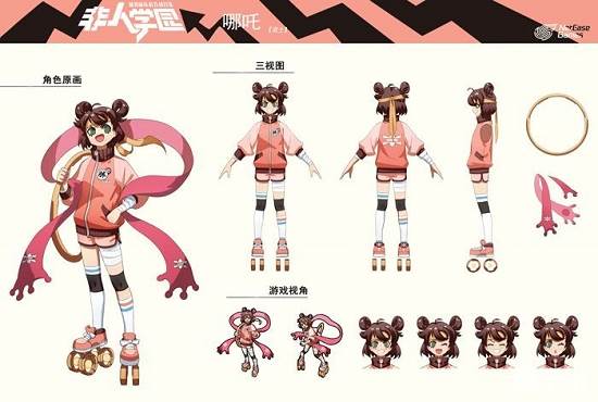 在这款游戏里,哪吒的形象变得非常的“二次元化”了。哪吒被设定为“非人学园”中一个“可爱的男孩子”,但却因为长相秀气和可爱,而常常被当作女生且被迫穿上女装。