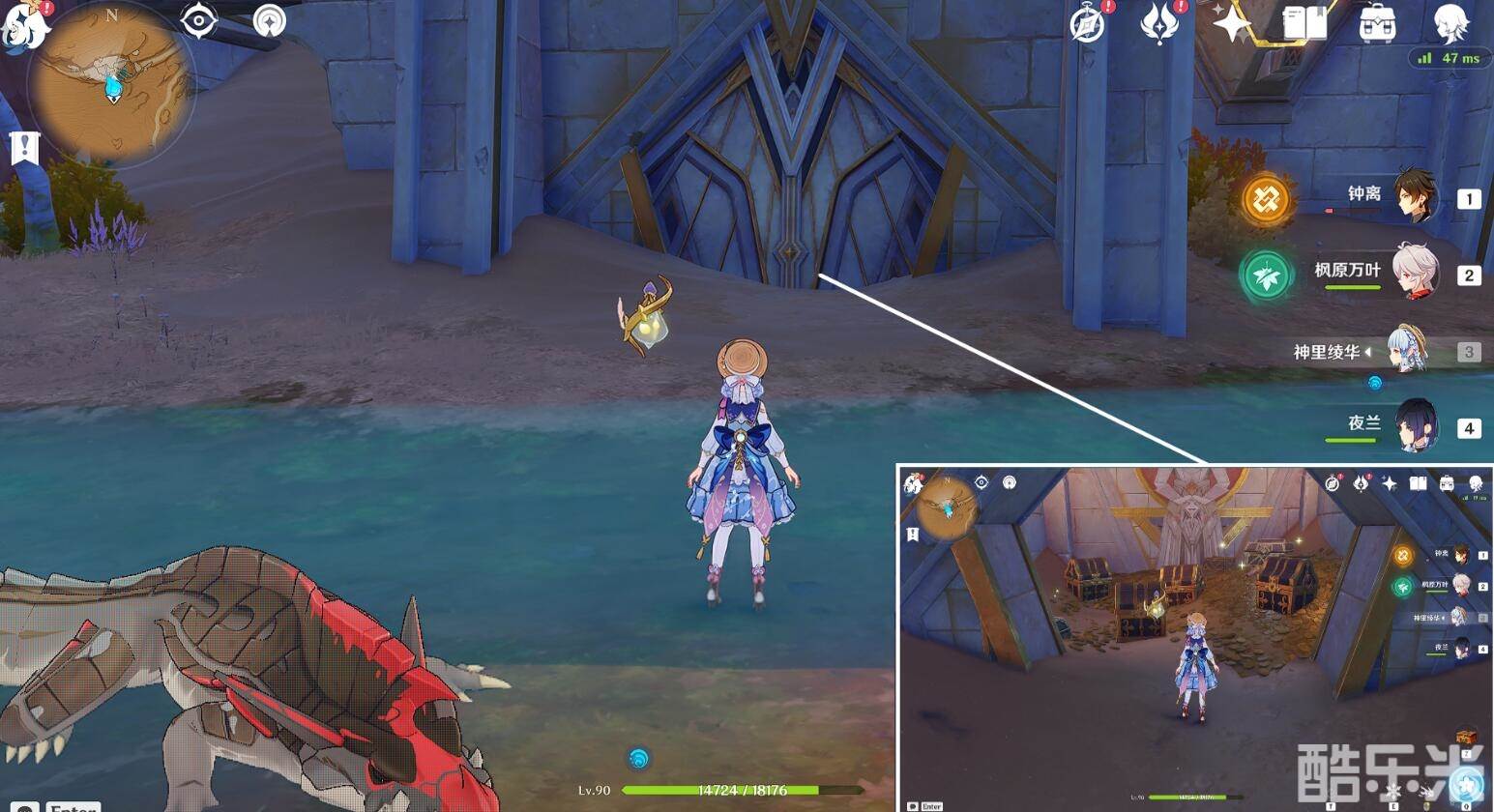 3、最后来到营地的底层,用钥匙开启大门,即可获得四个珍贵宝箱啦(各5w摩拉)