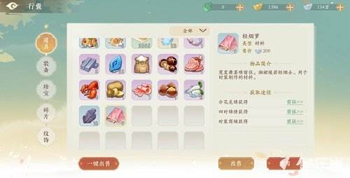1、目前游戏内获取轻烟箩材料的方法一共有三种,第一种就是通过时装商铺获取,玩家可以花费元宝购买轻烟箩材料,一个轻烟箩价值五个元宝,每日购买没有上限。