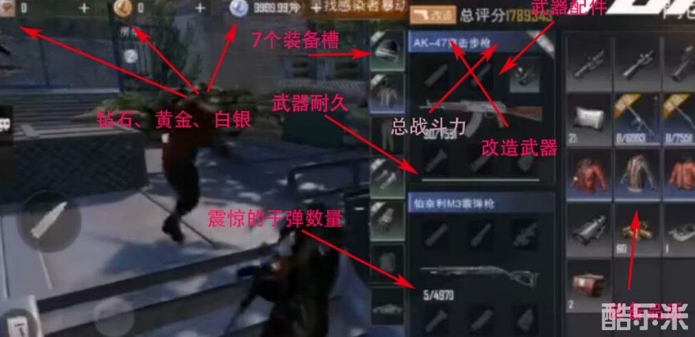 1、【主武器】,每人可以装备两把枪支武器,武器还可以改造,不知道怎么个改造法,看地下的那个条,武器应该是有耐久的。