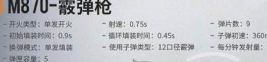 1、M870被玩家们叫做单喷,一枪一个,在一发子弹中暗藏九发刀片,对群体敌人的杀伤能力会让玩家眼前一亮。