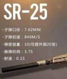 1、sr-25是一把使用7.62子弹的半自动精准设计不强,高威力、高射程让它可以在远距离安全的击杀感染目标。