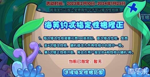 这部分和之前的专属性格修正活动一样,第一次改变性格为免费修改,第二次开始每次修改需要消耗100洛克钻。