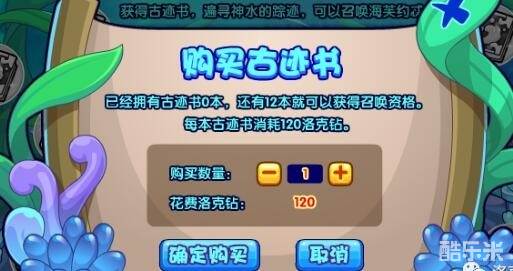 点击【获得古迹书】可以打开购买界面。每本古迹书需要120洛克钻。请按照界面指引获得哟~限时活动《结伴出游》也有古迹书的放出,大家可以根据自己的选择分配古迹书的获得。