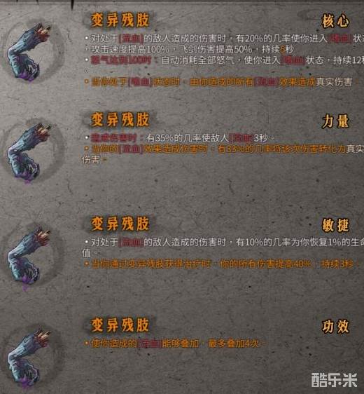 ②仅橙色品质:当你通过变异残肢获得治疗时,你的所有伤害提高40%,持续3秒。