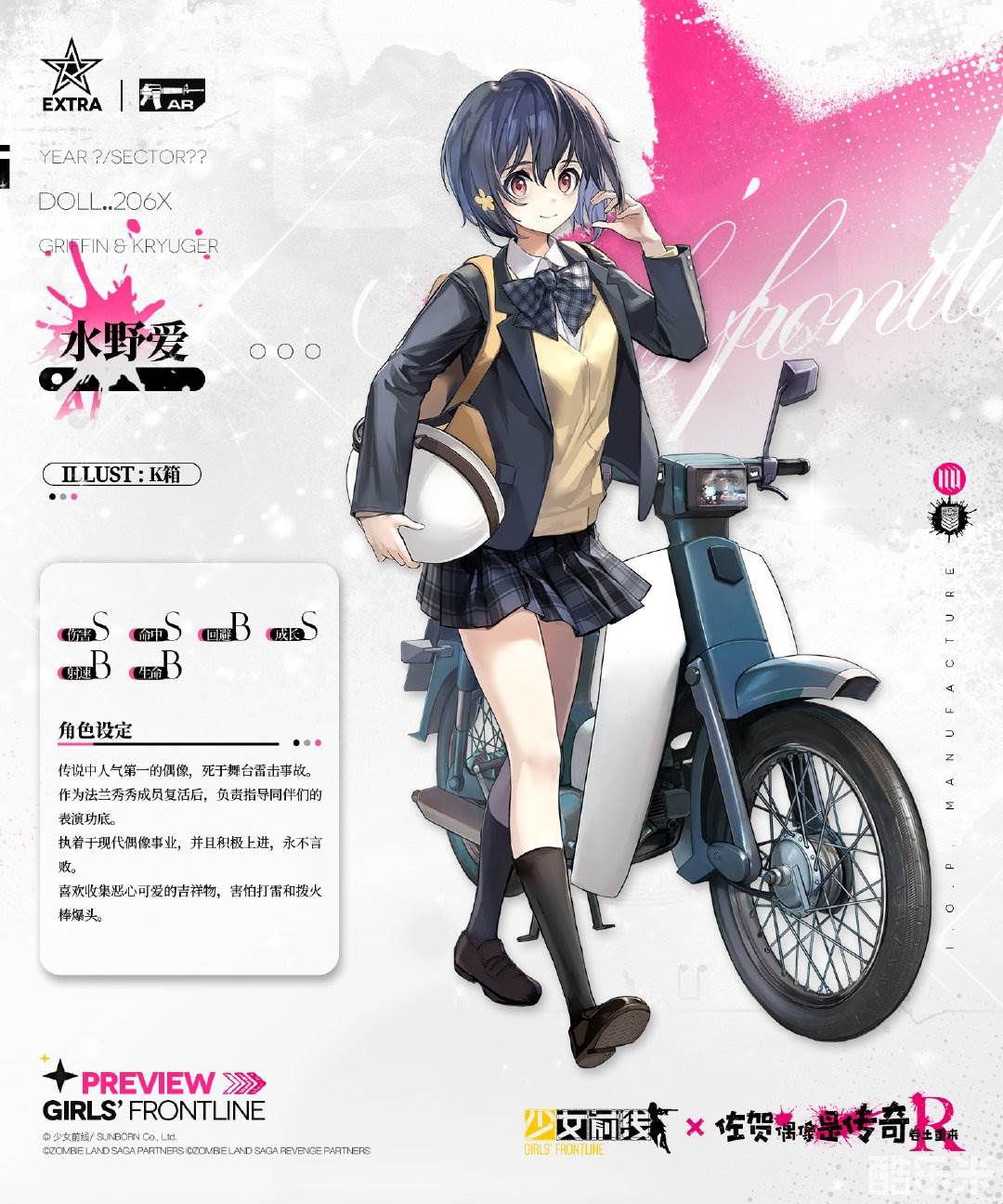 现在为您带来将在本次联动中登场的特典突击步枪人形“水野爱”的介绍!不同时代偶像的碰撞与融合一定十分精彩哦~