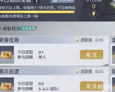 关于升级,游戏每天都会有固定的日常给大家去做,不至于像无头苍蝇一样乱做任务,导致收益很低。首先要做的就是每日里的经验任务,很直白就是给升级经验的任务,分别有聚落、遗落之城、据点巡逻等四种,对应的游戏体验也不同,有组队有独狼,除了下副本还有据点战,涵盖了开发者希望大家不要漏过的玩法模式,而且战斗本身也有经验,熟练之后,甚至在半小时内就能清空四个任务,还能体验到组队的乐趣。所以这些是性价比最高的任务,升级的话,刷每日经验的优先级最高。此外每日里的活跃任务也可以顺带做掉,虽然不怎么给经验,但给的实用道具比较多,属于每日必清的任务。