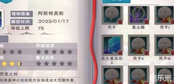 阿斯特奥斯资质:等级上限75级生命资质:3.327~4.080 攻击资质:1.910~2.403(仅供参考)