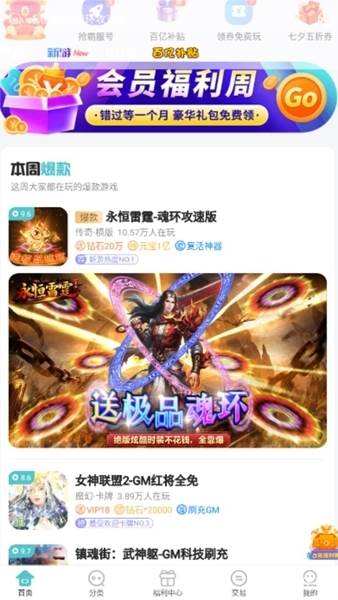 一元游戏是一款专为玩家提供热门bt游戏资源的福利平台,新用户注册登录就送返冲福利,每日签到还送满级vip,无限元宝,无限钻石等礼包,还有各种GM特权,1000%返利活动等你来参与,在一元游戏盒子中你可以感受到不一样的游戏乐趣!