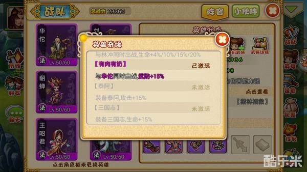 当进入中后期获得武将已经充足时,搭配奇缘将会是很容易的。此时,一个很好的选择就是上阵同一阵营中的史诗英雄,激活他们间的奇缘,以获得最大的数值加成。同时,也在其他空阵位及小伙伴中,安排可以激活他们奇缘的传奇英雄。