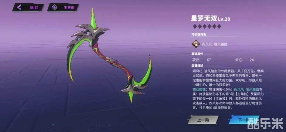 物理伤害+10%,专属技能:释放基础形态下的第3段【主角技】及罡风形态下的每一段【主角技】时,额外召唤2道烈风攻击敌人。烈风每次命中敌人都造成部分物理伤害,并施加1层撕裂效果。