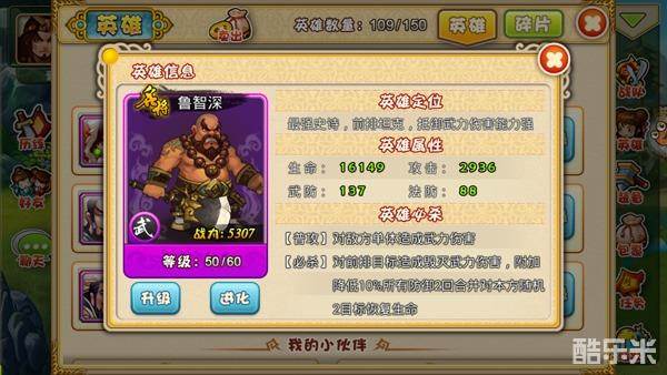 然后是水浒阵,初始武松,其他三个是鲁智深、宋江、花荣。感觉这个阵容有些尴尬。武松两轮一必杀很美,但是只能作为纯输出,在什么阵都能混得开,但是跟谁也配合不起来。不过前期的时候相比起来武松厉害很多,一开始史诗将没那么多,其他两个初始的效果是给普通和传奇加上的话就大打折扣了。鲁智深和花荣的效果还算可以,一个减前排T的防御,一个减后排dps的输出。宋江的必杀是这三个人里面最好,造成中状态的敌人每回合掉血。