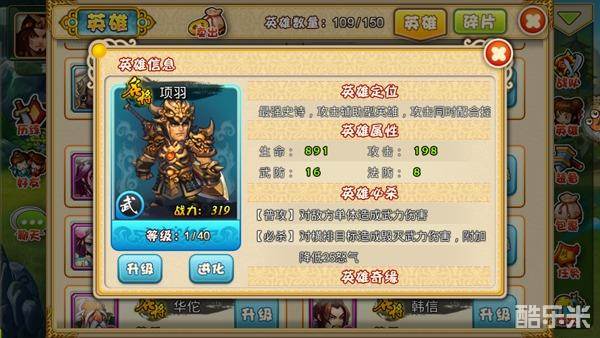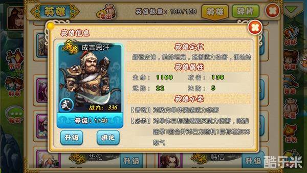 最后是群雄了,初始项羽,其他三个是成吉思汗、秦始皇、孙武。群雄必杀效果都是控制型的,减怒眩晕封印一应俱全。不过相应的,强化输出和生存的效果就被牺牲掉了。所以说打起来有点感觉输出也不行,生存也不行。控制效果一过,就算是任人宰割了。战力高的话,可以很容易的各种打闷棍,让对面放不出几个必杀就输了;但是战力低的话,效果不敢恭维。这种阵容绝对是土豪的不二选择,毕竟土豪们的战力一般都高,就可以去吊打低战力屌丝了。