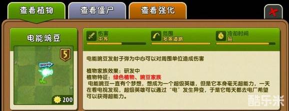 玩家通过武装多种植物切换不同的功能,快速有效地把僵尸阻挡在入侵的道路上。不同的敌人,不同的玩法构成五种不同的游戏模式,加之黑夜、浓雾以及泳池之类的障碍增加了游戏挑战性。植物大战僵尸2金卡电能豌豆怎么样,电能豌豆好用吗。这颗植物的在没有升到5阶的时候非常弱,但是五阶之后强力的聚怪和控制效果是非常不错的。接下来就让小编带大家看看这个植物的详细介绍吧。