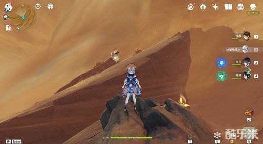 (1)来到千壑沙地的东侧,从传送点下来可以看到一个挑战(p1)
