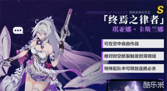首先终焉之律者的定位是一个输出,并且是一个火元素的输出,从测试服V2的表现来看机制十分优秀,不开启大招光靠分支的话是一个十分适合速切的角色,伤害非常不错,并且就算不开启大招也有一个真时停的分支,这也是全游戏中第一个真时停的分支,大招是一个爆发技能,玩家们可以参考炎之律者的大招,就是一个纯爆发,倍率十分夸张,是一个无论爆发能力还是速切伤害能力都非常不错的角色,有条件的玩家还是非常建议抽取的。