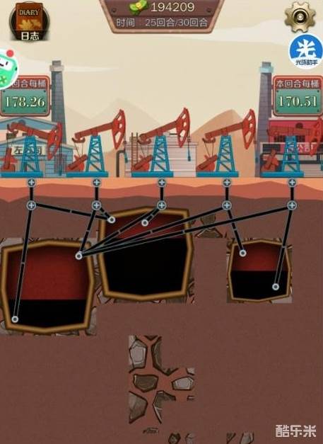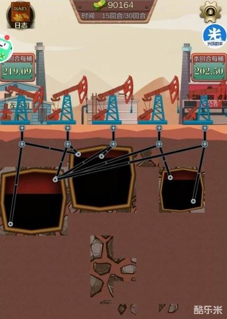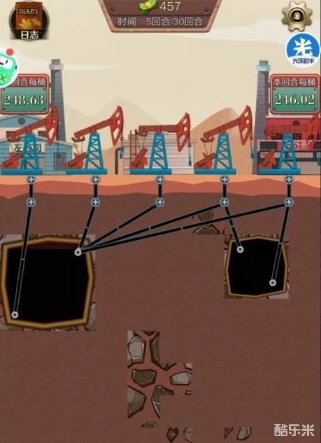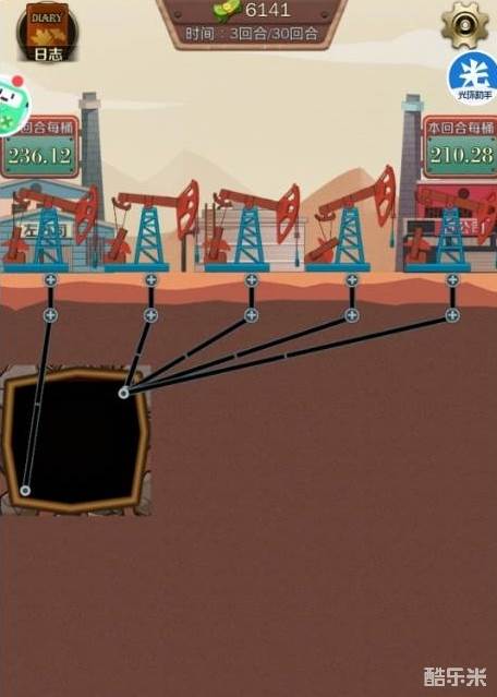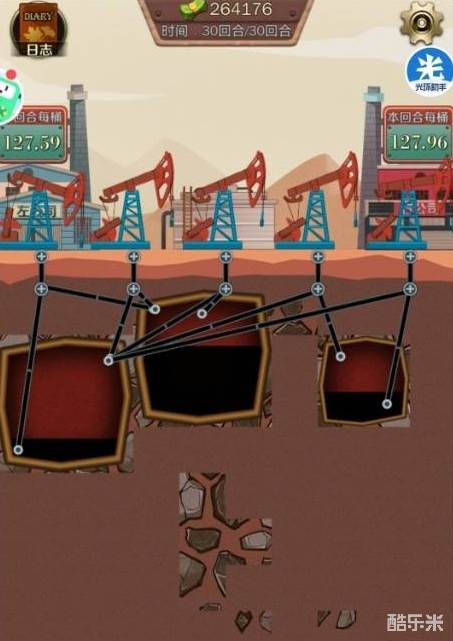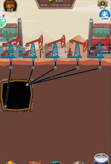 4、第五回合升级井,找到第二个矿并再连上五根管子。我这个运气不好,找矿浪费了点钱所以没全连上