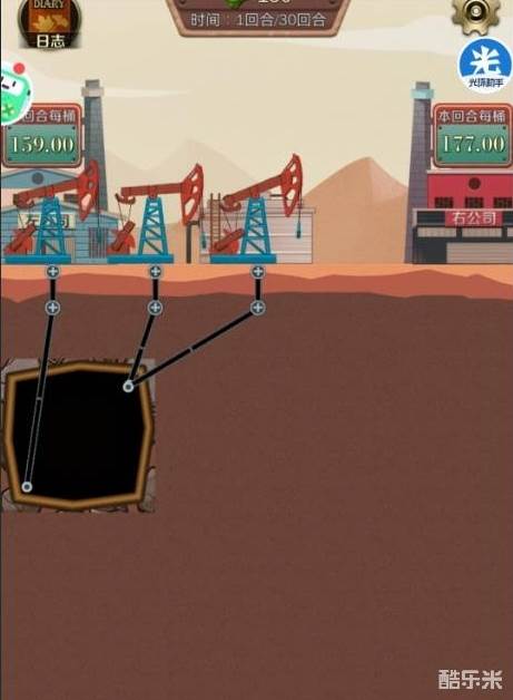 4、第五回合升级井,找到第二个矿并再连上五根管子。我这个运气不好,找矿浪费了点钱所以没全连上