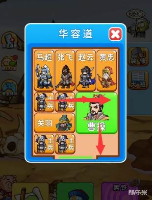 3、我们将下方两个士兵向左移动,然后让曹操往下走。