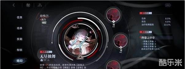 5.哈梅尔差不多这个练度就行,带回血套,有大开大,加上启迪buff回血是够的,开不开专没影响,反正一直是加血形态。
