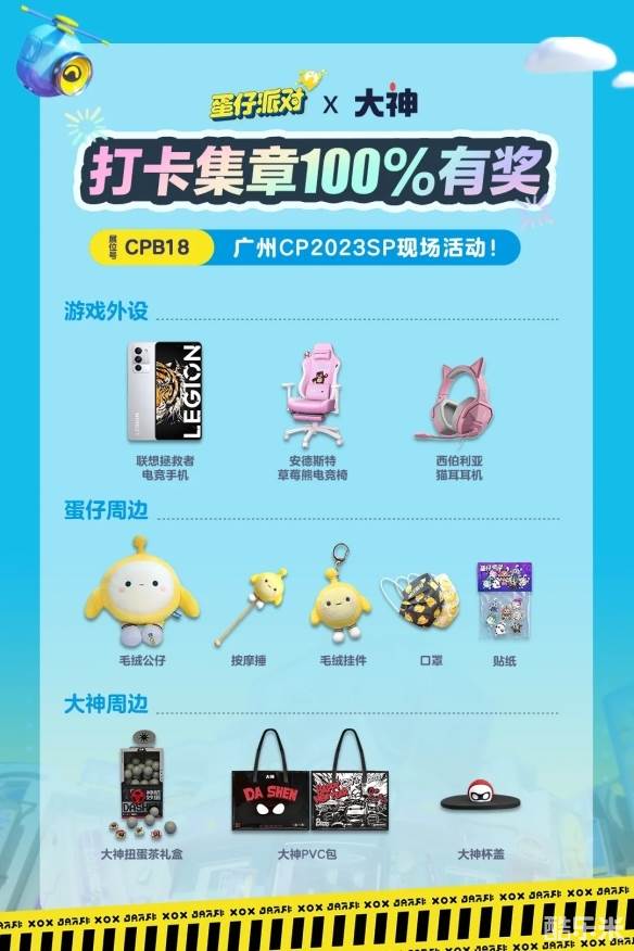 大神将联合《蛋仔派对》,携有趣的活动及海量福利现身广州CP2023SP。现场展台还将送出联想拯救者电竞手机、安德斯特草莓熊电竞椅、西伯利亚猫耳耳机、蛋仔派对游戏周边等丰厚好礼,欢迎各位玩家的到访!
