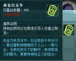 在此任务做完之后,即可获得建立帮派需要的道具“赤金白玉令”哦!有了这个白玉令,大家就可以创建属于自己的帮派啦~
