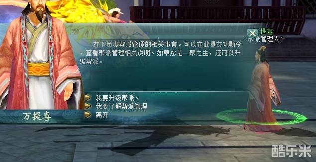 有了帮派就可以在万提喜处进行升级,不过需要帮派中成员提交功勋令牌以及捐献帮派资金,还需要帮派具有一定的人气。功勋令牌即玩家参与副本或者活动时会额外获得。