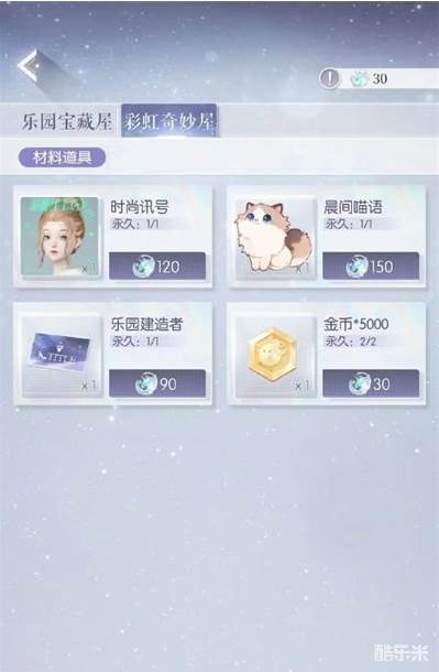 第二步,买它喜爱的建材,卖给它(获得720乐园币),拿到彩虹碎块(30个)