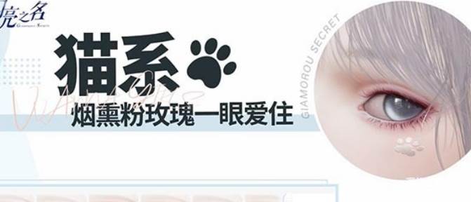 第一步,眼妆。这款妆容从眼部开始,雾面烟粉色平铺在眼部上,添加棕色系眼影,强调一下眼尾部分,营造出立体时尚感。它呈现时下最流行妆容,雾蒙蒙烟粉色楚楚动人,最适合可爱萝莉装扮,在眼睛下方贴上猫爪图案。点击眼部之后,大家添加不同眼影样式和色调。