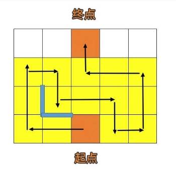 2、具体步骤:往左两格,往上两格,往右一格,往下一格,往右两格,往下一格,往右一格,往上两格,往左两格,往上一格,成功到达终点;