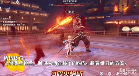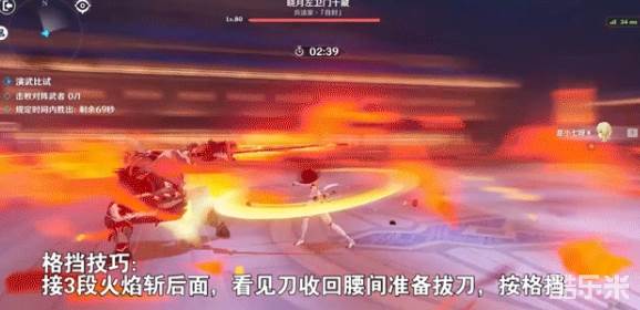 格挡技巧:在3段火焰斩后面,就会放这个技能,收刀在腰间时,按格挡。