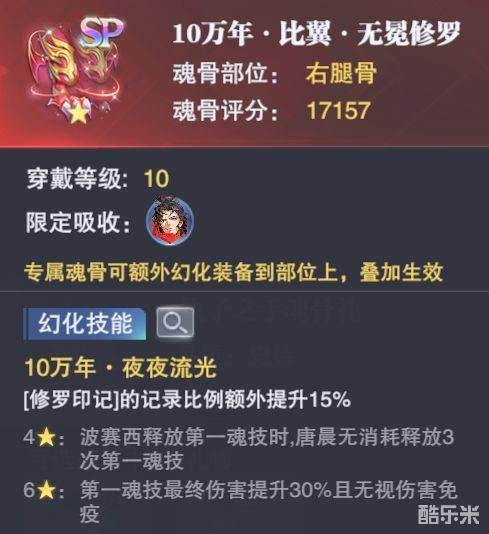 接着针对唐晨的这款全新右腿专属魂骨,相对波赛西就简单太多了,这里总结下其效果: