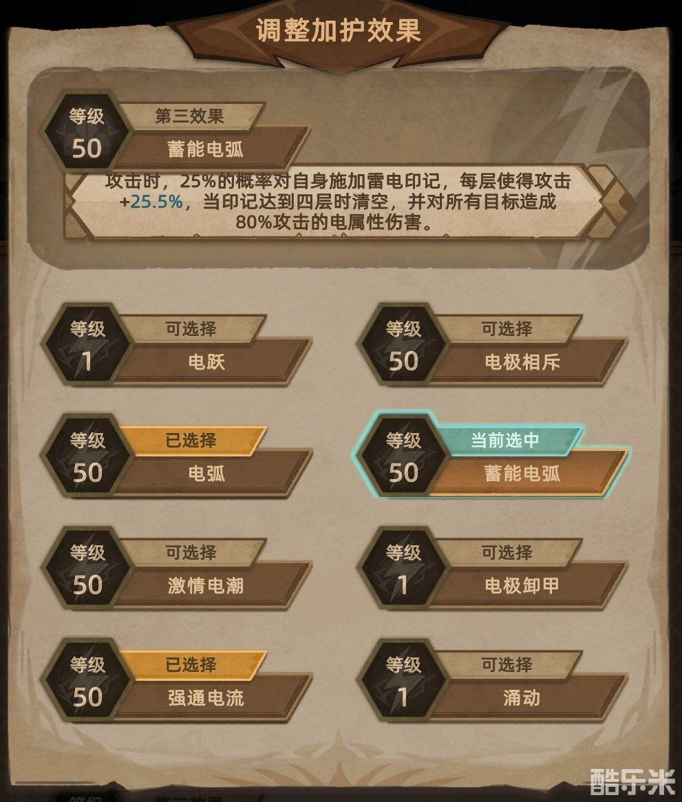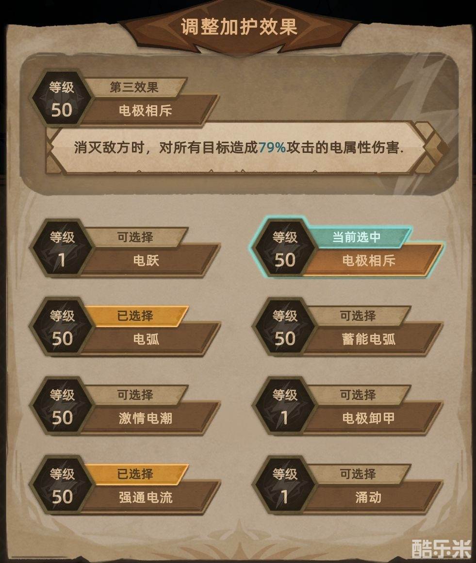 电弧和强通电流必带,电极相斥用来刷材料,蓄能电弧用来应对难度关卡,比如正塔115和120层,以上4种皆要点满,其他不用点。