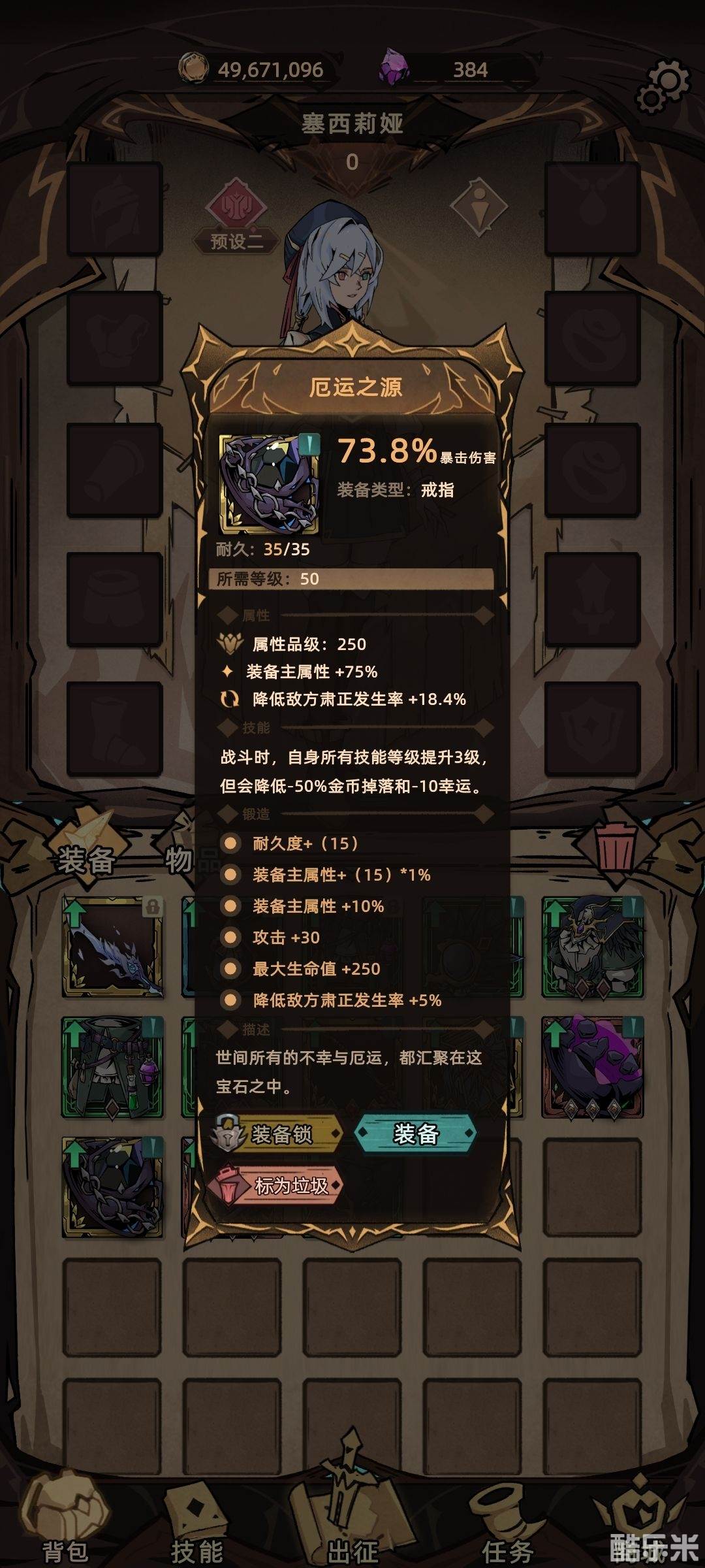 首饰用神选,无限统治和厄运之源(堆肃正和技能等级)。