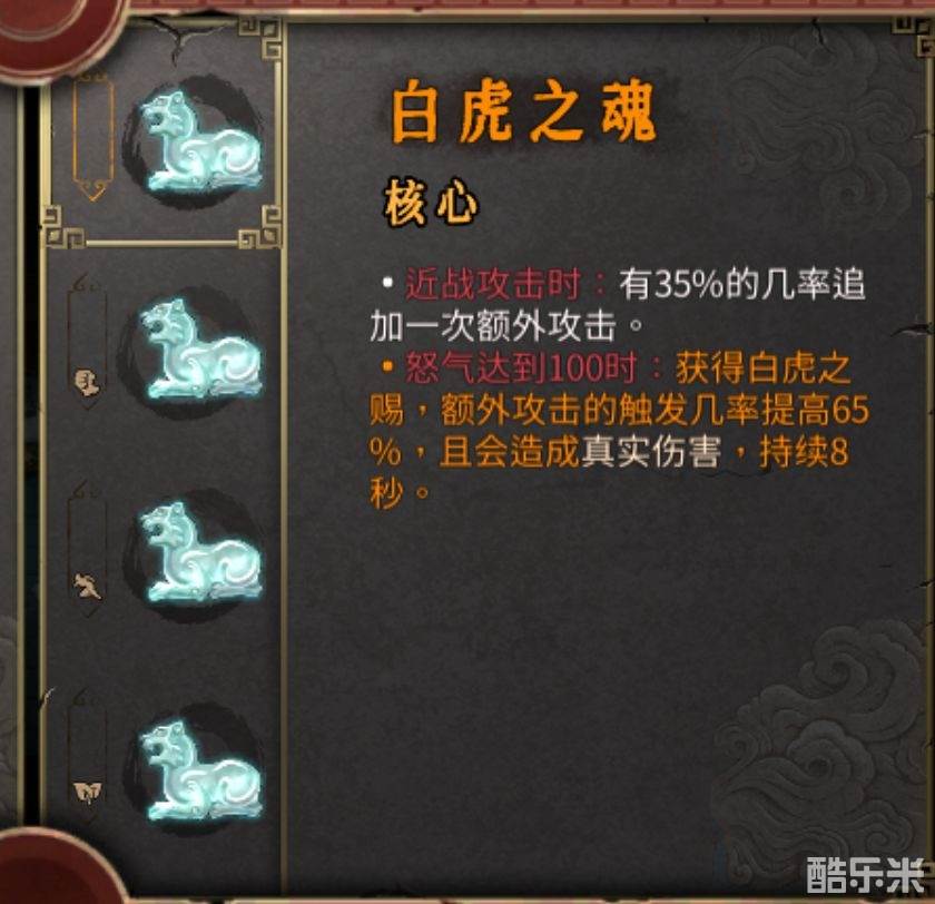 有几率额外攻击,暴怒后,几率提升至65%。