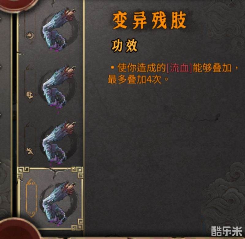 白虎➕牙齿,流血特效基本不会断,残肢功效就可有可无了。