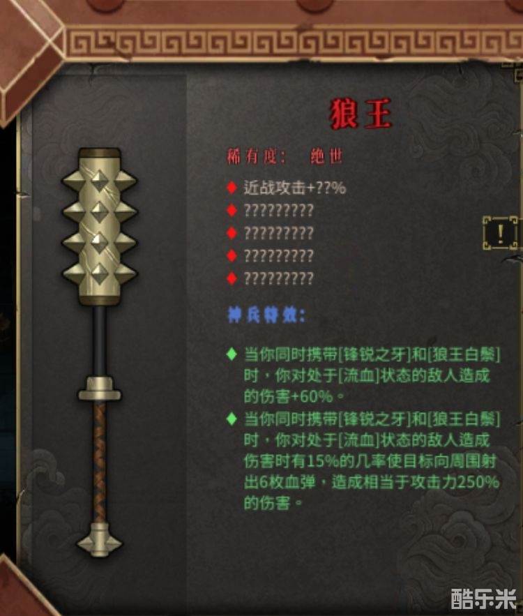移动➕12%,近战攻击时15%几率造成200%伤害。