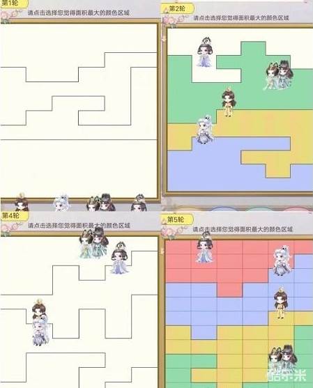 1.同心绘彩游戏是从四个羁绊人物里任意选一个一起同行,游戏开始的时候,选择你认为面积最大的空白区域去占领,四个人物都占领完后就会显示格子,格子会自动消除,最后剩的格子最多的那个人获胜,总共有五轮回合,五轮结束后结算分数,一局最高600奖励分。